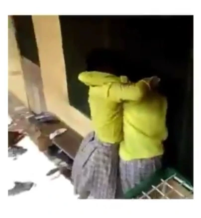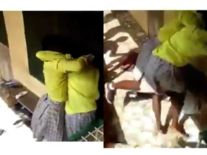 As two of them battled each other,their school colleagues were hailing them and telling the girls to keep fighting.They didn’t Intervene for a while as they recorded the scene,it was minutes later that the rest of the girls started to make attempts to separate both of them.