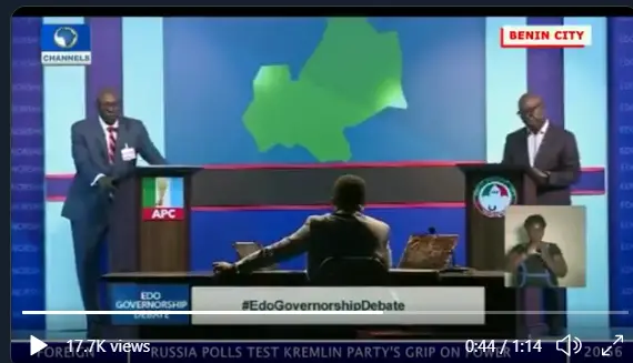 The much expected Edo governorship debates is currently going on and as expected, the salvos and punchlines are continuously flying back and forth as the two front line candidates, Pastor Ize Iyamu of the APC and the incumbent and candidate of the PDP, Godwin Obaseki go head to head in determining who is best fit for the position of governing the state.