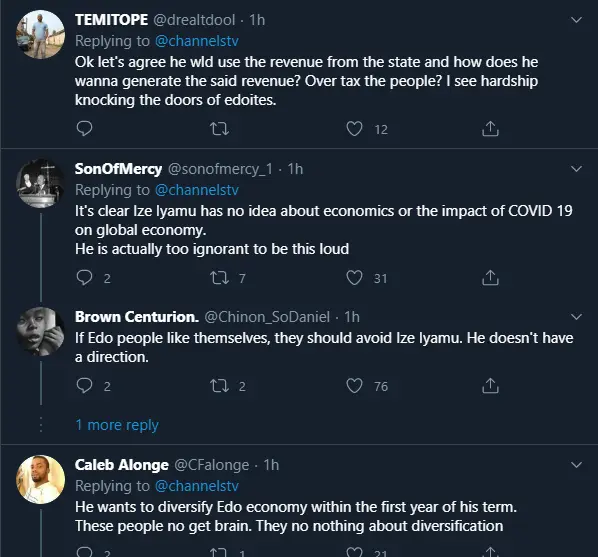 Reactions from the Channels TV twitter page also has most Nigerians slamming the APC candidate for dodging the question put to him by Obaseki.